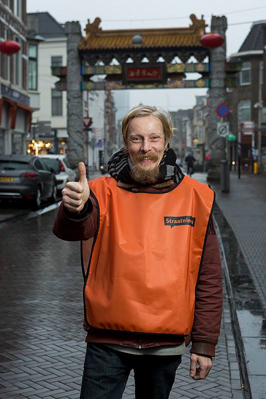 Verkopers van Straatnieuws Den Haag/Rotterdam hebben op vrijdag 16 februari 2018 nieuwe hesjes uitgereikt gekregen.