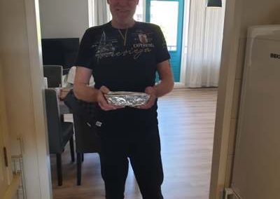 Donderdag 16 april stond er ‘kip cashew met rijst en groente’ op het menu. Medewerker Jeroen Melchior is vervolgens bij 21 adressen langs geweest, waar hij op afstand de maaltijd heeft kunnen overhandigen. De vrijwilligers waren erg blij met zijn komst en maaltijd. Even een praatje en daarna heerlijk eten.